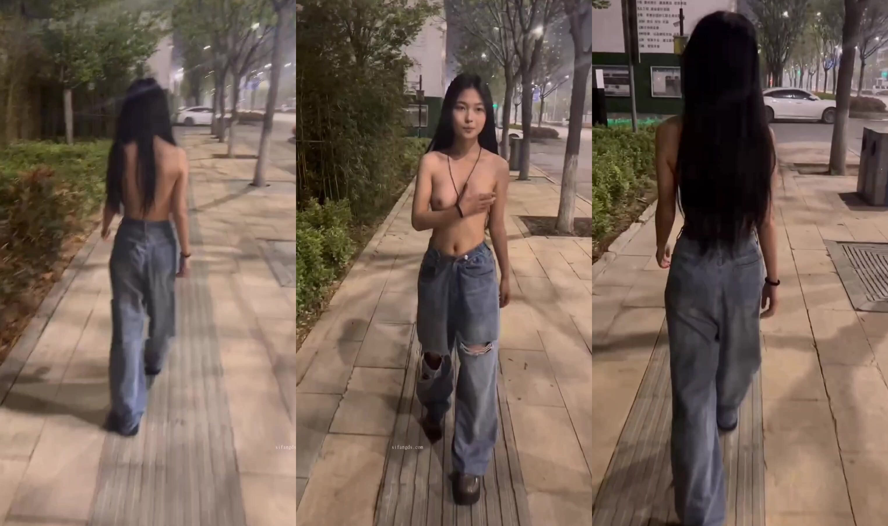 騷貨人行道裸上身散步